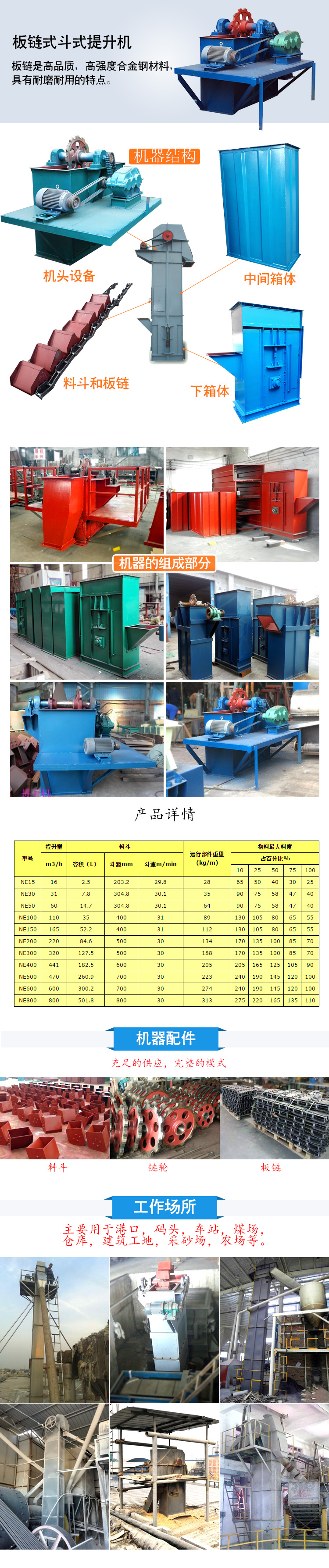 【產品簡介】NE系列板鏈式斗式提升機本機系流入式喂料,物料流入料斗內靠板鏈提升到頂端,在物料重力作用下自行卸料。本系列提升機規格多(NE15~NE800共11種)提升量廣;且生產能高,能耗較低,可逐步代替其他類型提升機,其主要參數見下表。該機采用全封式機殼鏈速低,幾乎無回料現象