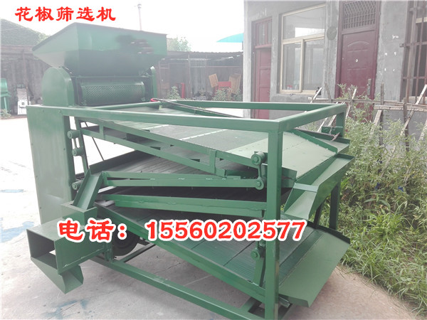 使用該機器可以把花椒中的籽、桿、葉、塵土等雜質分別清選出來,同時分出花椒顆粒等級,取代繁重的人工清選勞動。花椒清選機是專用于花椒脫粒、清選、分級、去雜的機械。 花椒篩選機及其他配套設備(提升機、皮帶機、絞龍、螺旋輸送機等)用途和特點:本機下方設有風機,可將從篩面流下的椒籽和花椒進一步風選分離,使篩凈率大大提高。